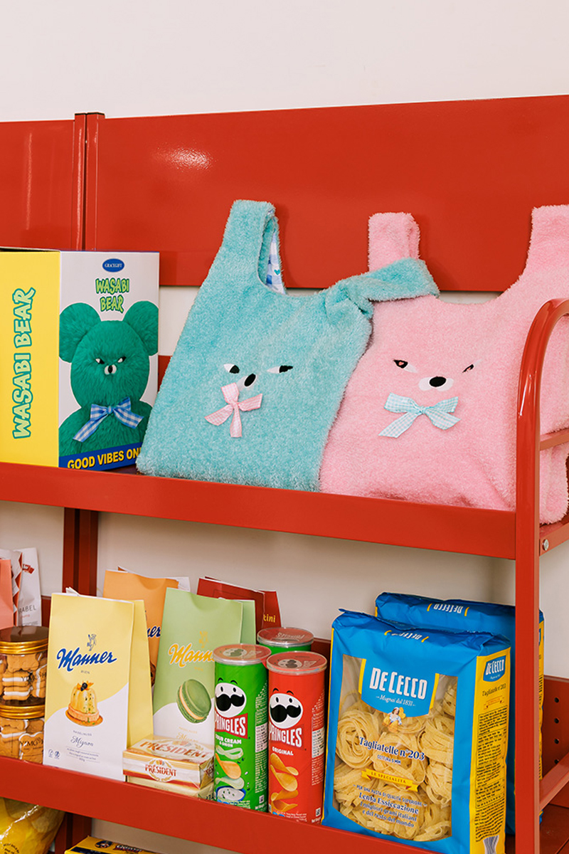揮別單調色系,用 Wasabi Bear 的高飽和色彩綠、紅、黃、粉,打造韓妞最愛的休閒風格。