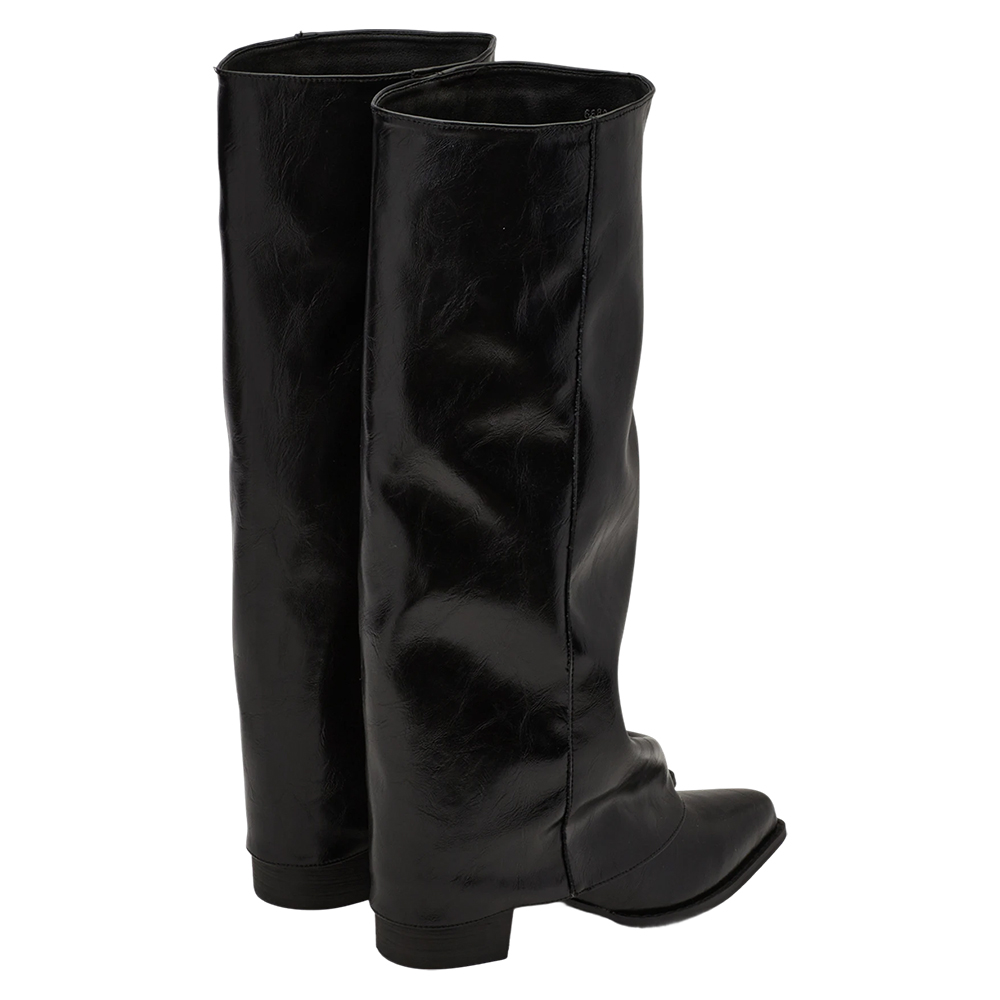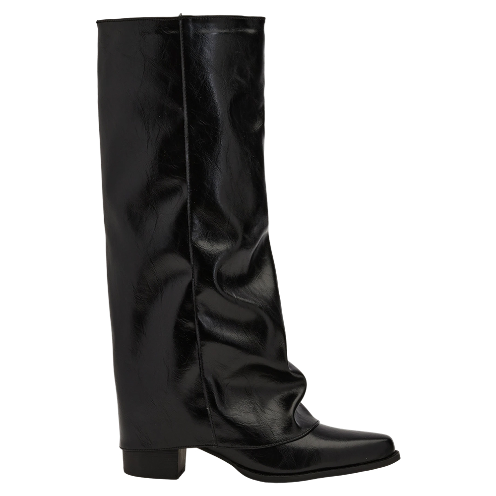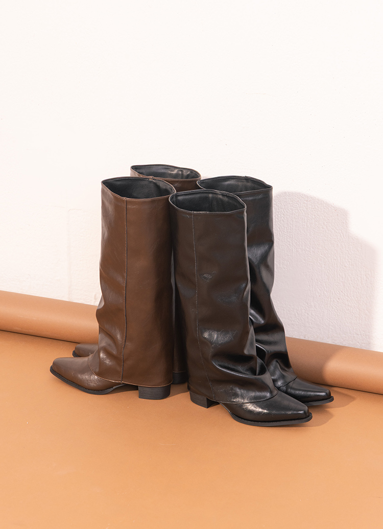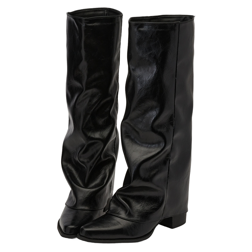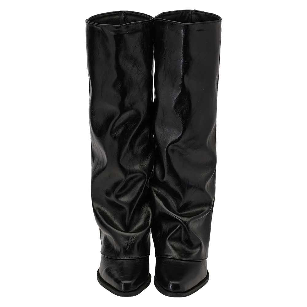 時尚秀場尖頭中跟堆堆褲管長靴 黑