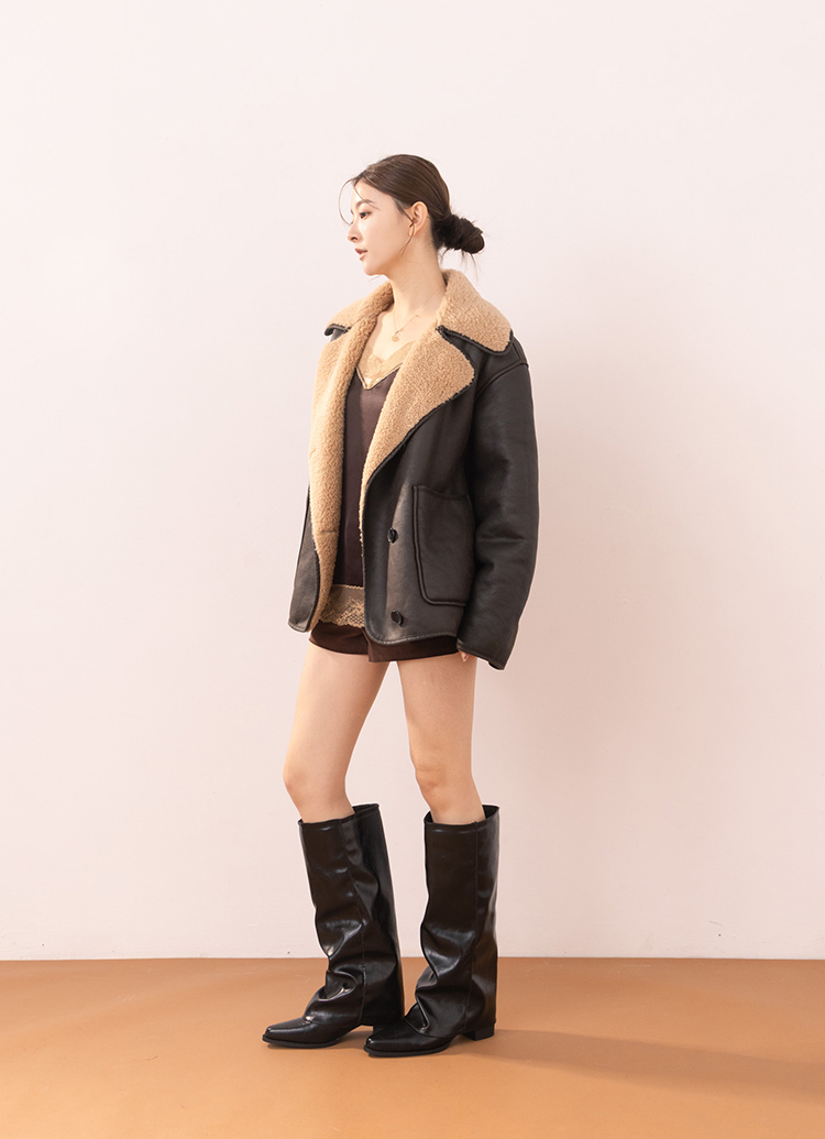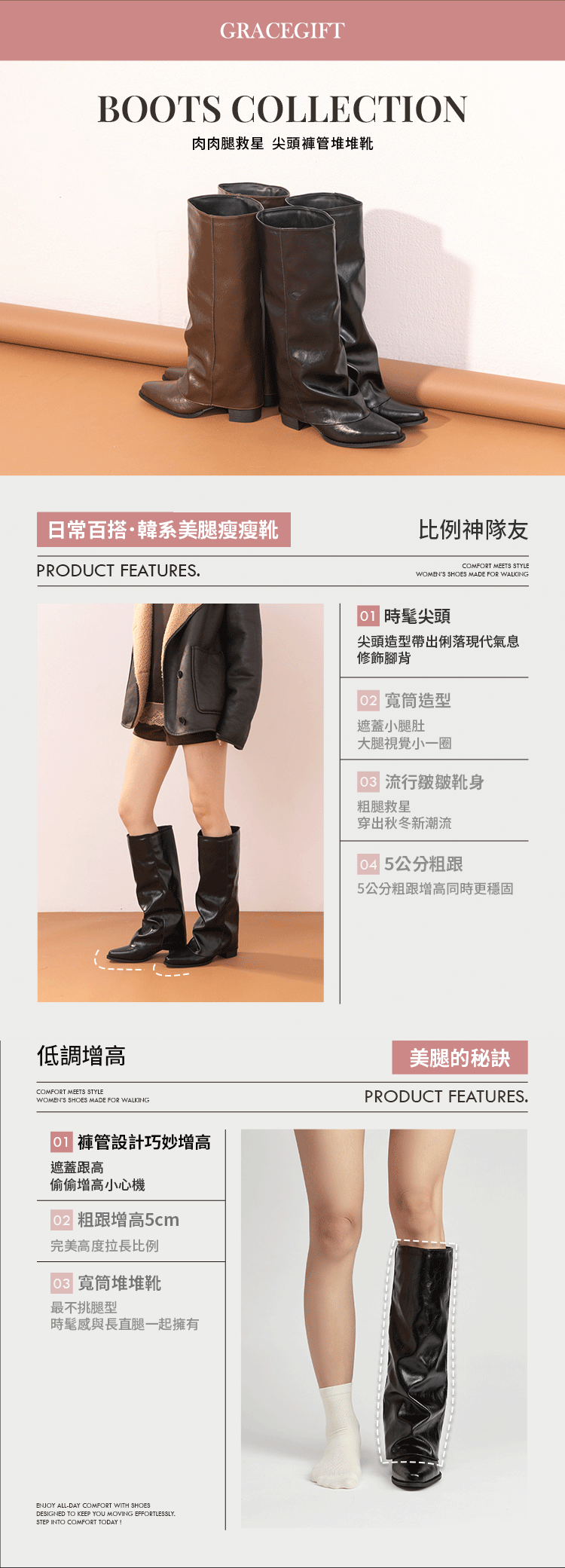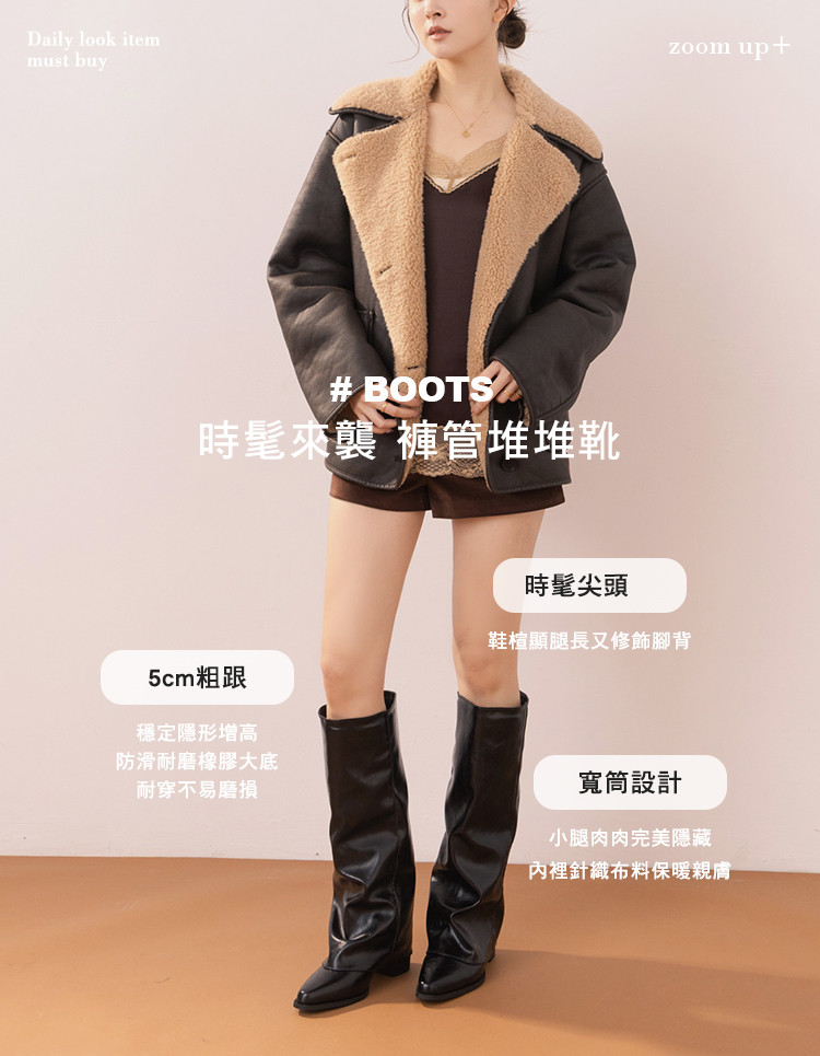 小腿肉肉藏進褲管靴裡,立現長直腿效果